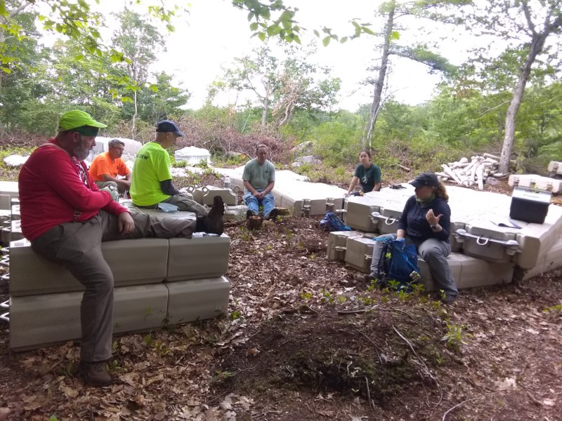 At first the slow going down below allowed the team to get ahead of the game. Here, the platform for the other end is being assembled. Even though we won't need it for a while, having it put together and ready insures we have enough of the correct parts - plus, it created a really nice big working surface for assembling the other regular sections.