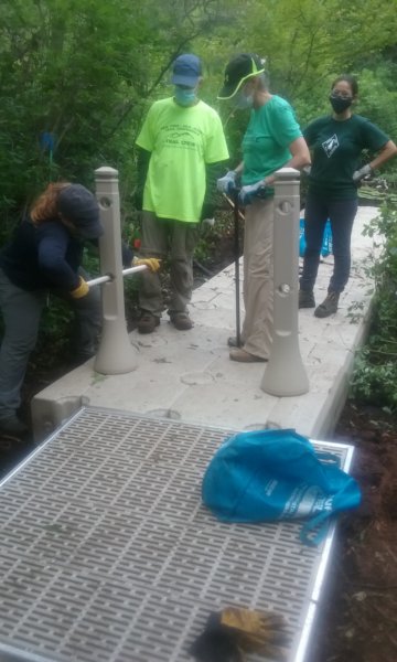 Once the way was cleared, the next sections were flown down and connected together. This reduced the number of connections that had to be made on an unstable surface.