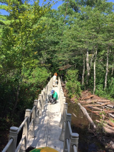 Now that the deckwork has been completed, the final railing posts can be put in place. While that is happening, Mike and Lee are starting at the other end installing the railings.
