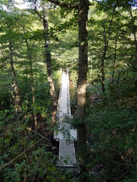 Chris and others also constructed a large stone landing for the gangway at this end which allows the hiker to come and go high and dry.