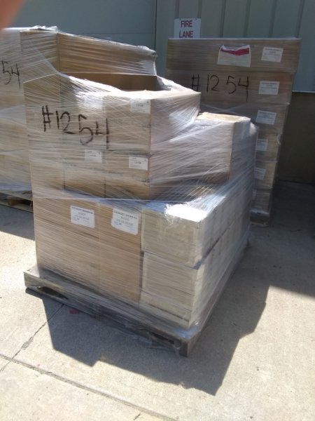 The walkway was, essentially, a modular dock system produced by Candock of Sherbrooke, Ontario, Canada. It was trucked down to us and staged at the Forest Fire Service's Andover, NJ depot. This is how it arrived off the truck - with 12 pallets and/or bundles of materials totalling around 4 tons.