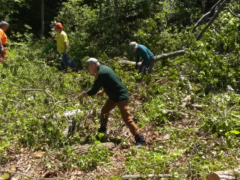 This is the area which we identified as being pretty much ideal as a place for the air-lift loads to be dropped. It's early Spring, so the trees are bare, but there are several of them which are completely dead. As it turns out, the FFS folks wanted to expand this area a little bit more to make it an actual landing zone for emergency evacuations or fire support.